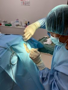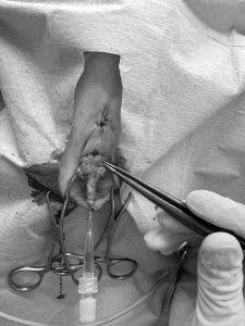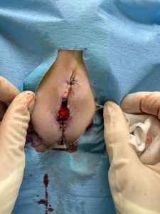 陰茎を切断し、尿道の粘膜と周囲の皮膚と縫合していきます。