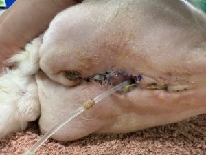 縫合部周囲に毛が付いてますが、落ち着いてきています。