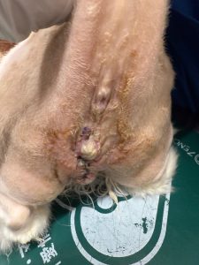 という事もあり、オーナー様と相談し、尿道閉塞の根本治療を目的とした会陰尿道造瘻術を行うことになりました。