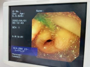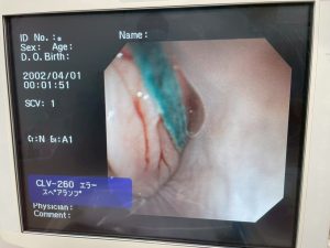 数時間の点滴治療後、次は大量の胃液の除去と消化管内部の確認の為、内視鏡検査を行います。
