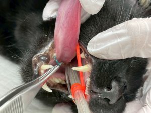 救急の現場でとても多く見られる猫ちゃんの紐状異物による消化管閉塞です。