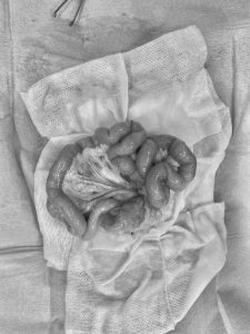 そんな流れで、この子の場合4カ所の腸切開を行い、無事に全ての紐を取る事が出来ました!!
