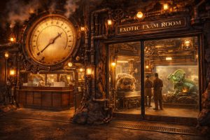 診察台に乗ってるのは、巨大なチワワ?ハムスター?とイグアナですかね?