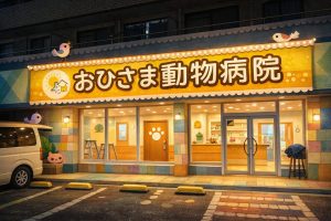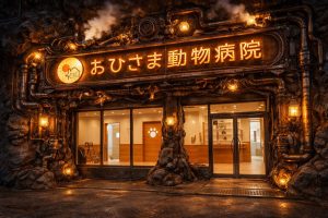 最近、よく遊んでいるchatGPTにおひさま動物病院の未来の姿を画像で作ってみました。